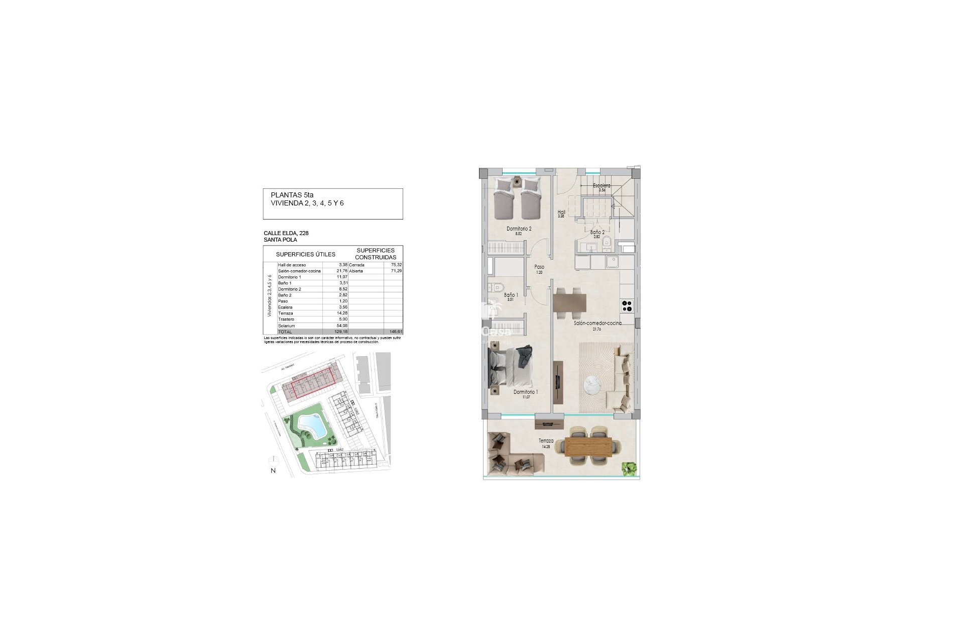 Beautiful apartment complex with large terraces, communal pool close to all services and the beach