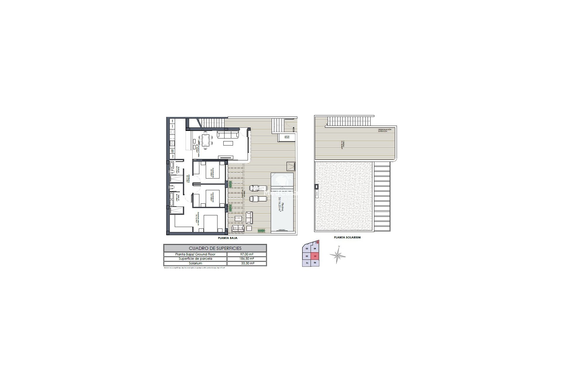 These modern new-build villas with private swimming pool and large rooftop terrace of approximately 33 m2, on a plot betreen 187- 250 m2, are located in Dolores/Alicante and have a total built area of approximately 130 m2 with 3 bedrooms, 2 bathrooms, a utility room, living/dining area with a modern fitted kitchen.