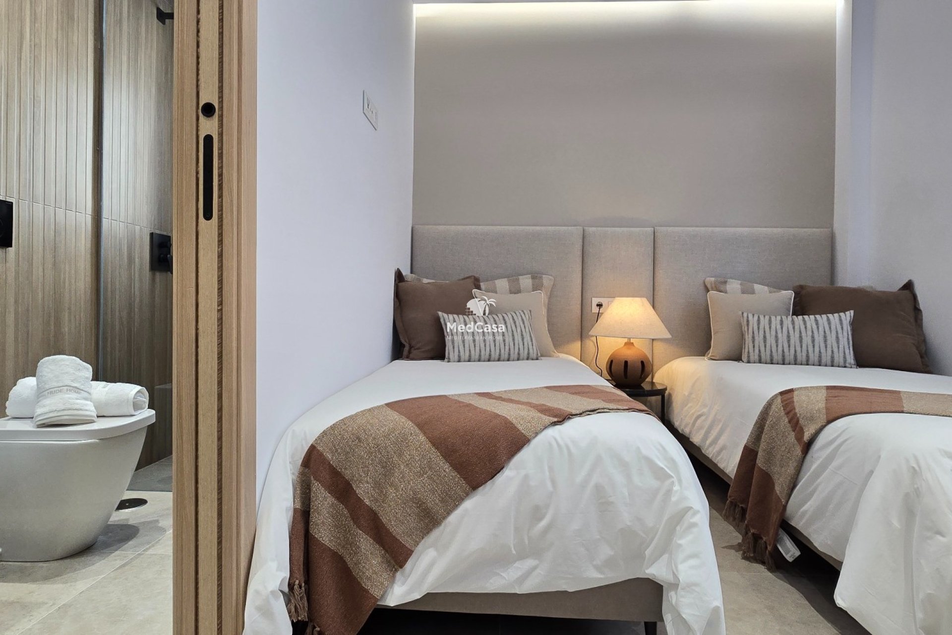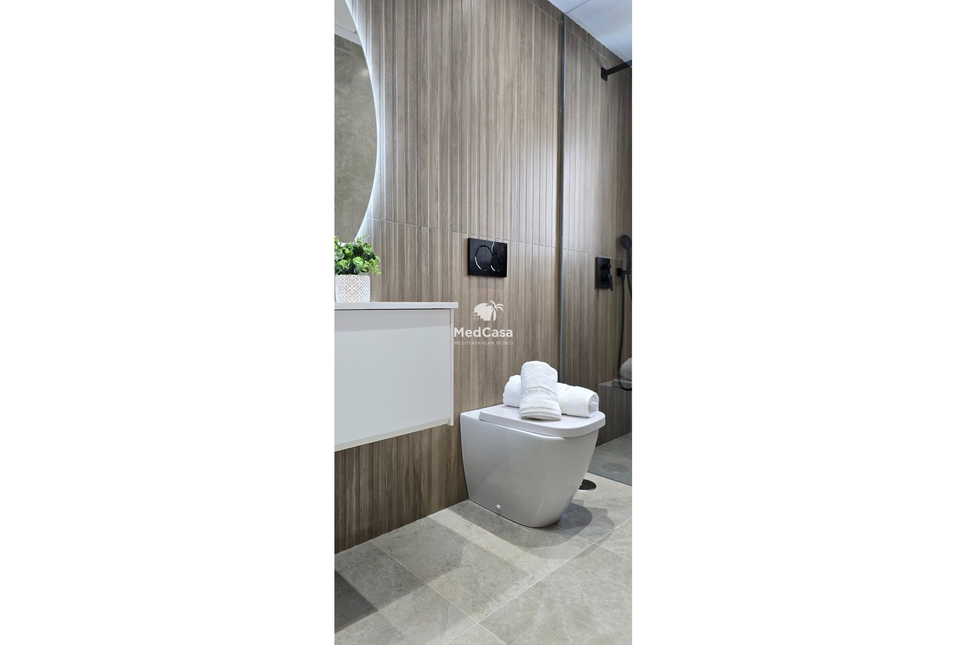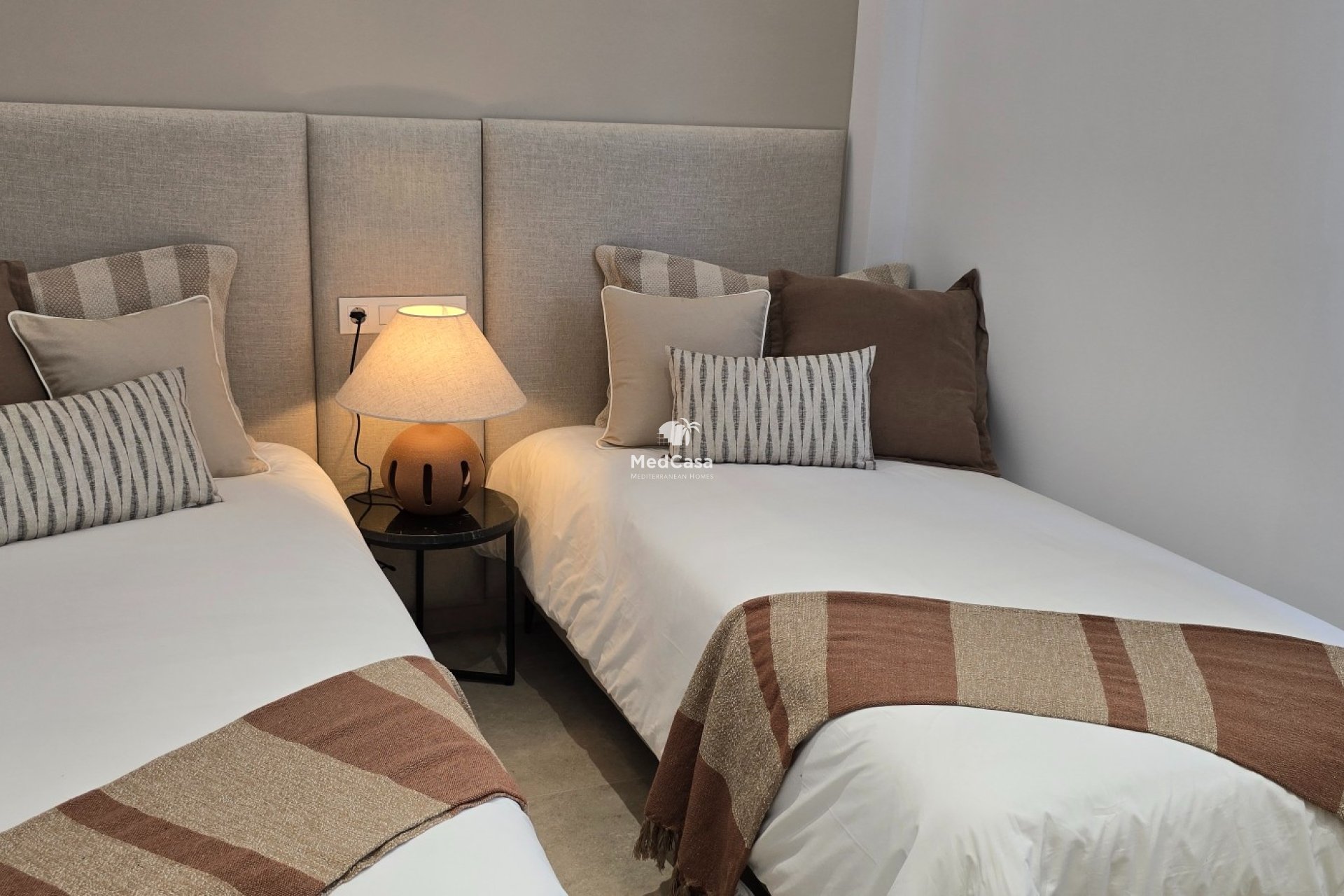 These modern villas, only 6 in total, are located directly in a golf course with views of the golf course and a private pool. They have a total built area of approximately 127 m², with 3 bedrooms, 3 bathrooms (2 en suite), a living/dining area with a modern fitted kitchen, and a rooftop terrace of approximately 54 m².