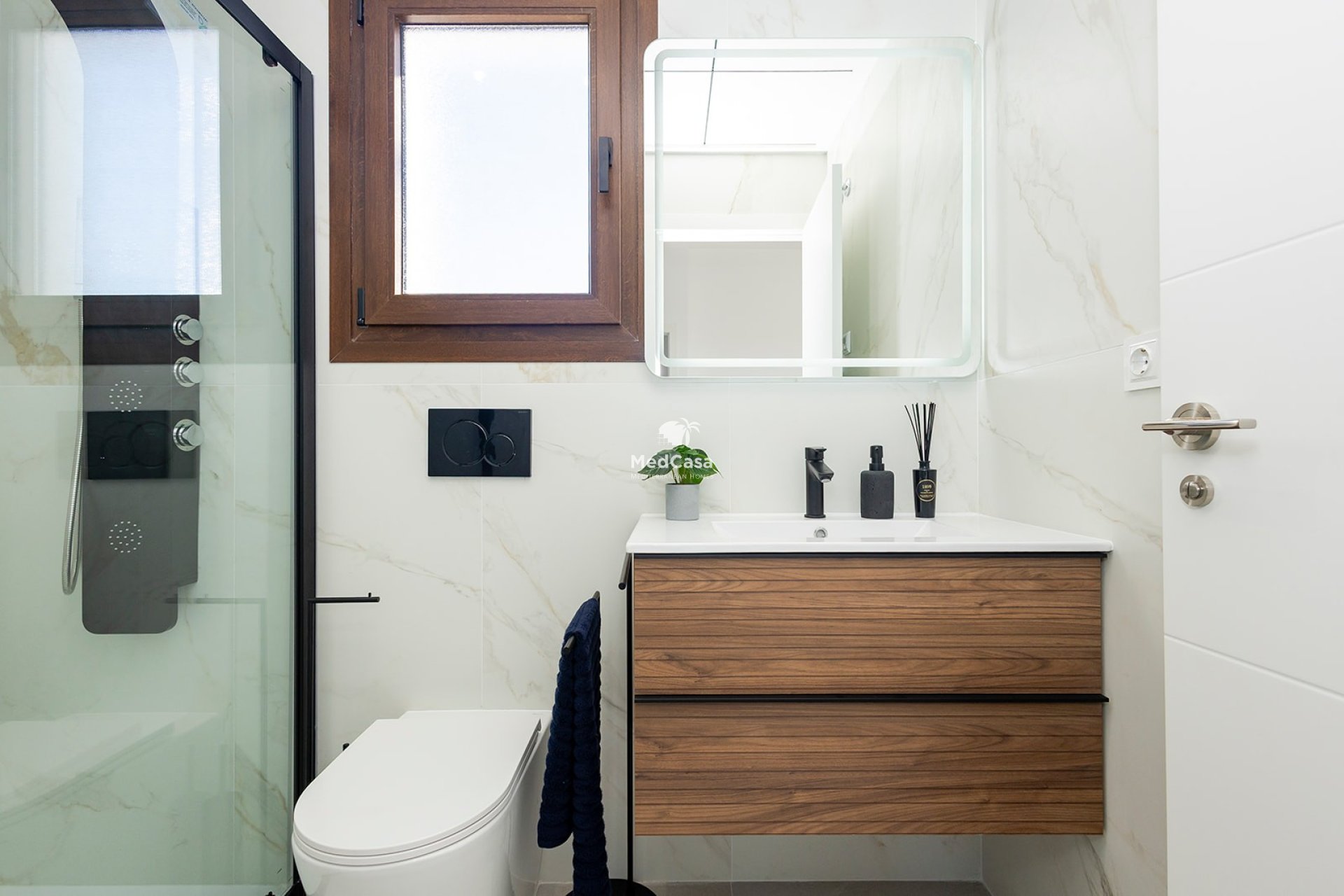 The amenities of these townhouses include, among others, aluminum windows with double glazing, optimal sound and thermal insulation according to current EU building regulations, security doors at the entrance, video intercom, pre-installation of air conditioning, bathrooms with underfloor heating, mirrors and glass shower screens, electric shutters, built-in wardrobes in the bedrooms, a modern fitted kitchen, and an Aero-Therm system for hot water supply.