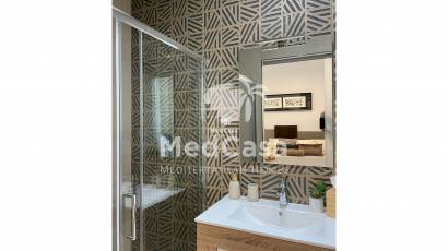 The equipment of these apartments includes, among other things, aluminum windows with double glazing, optimal sound and heat insulation according to current EU building guidelines, security doors in the entrance area, pre-installation of air conditioning*, LED lighting, electric shutters, bathrooms with mirrors and glass shower partitions as well as underfloor heating, built-in wardrobes in the bedrooms and a modern fitted kitchen (without kitchen appliances*).