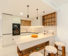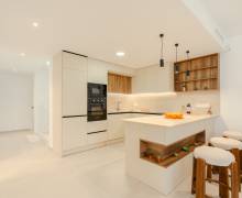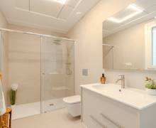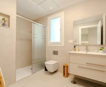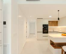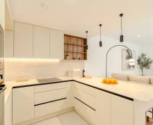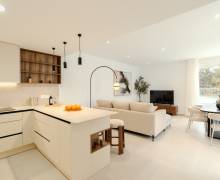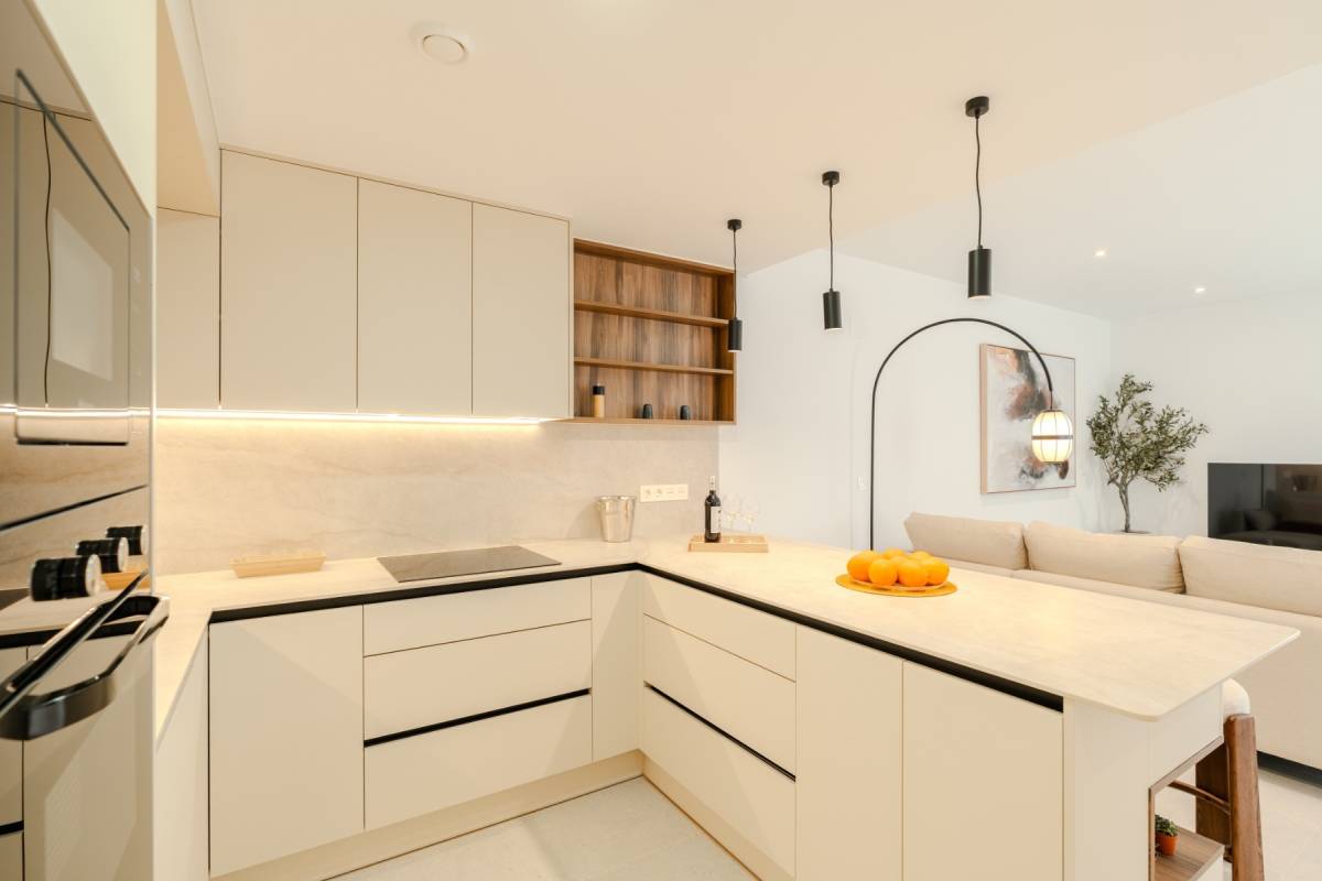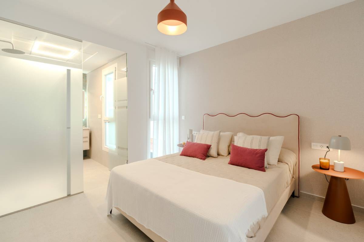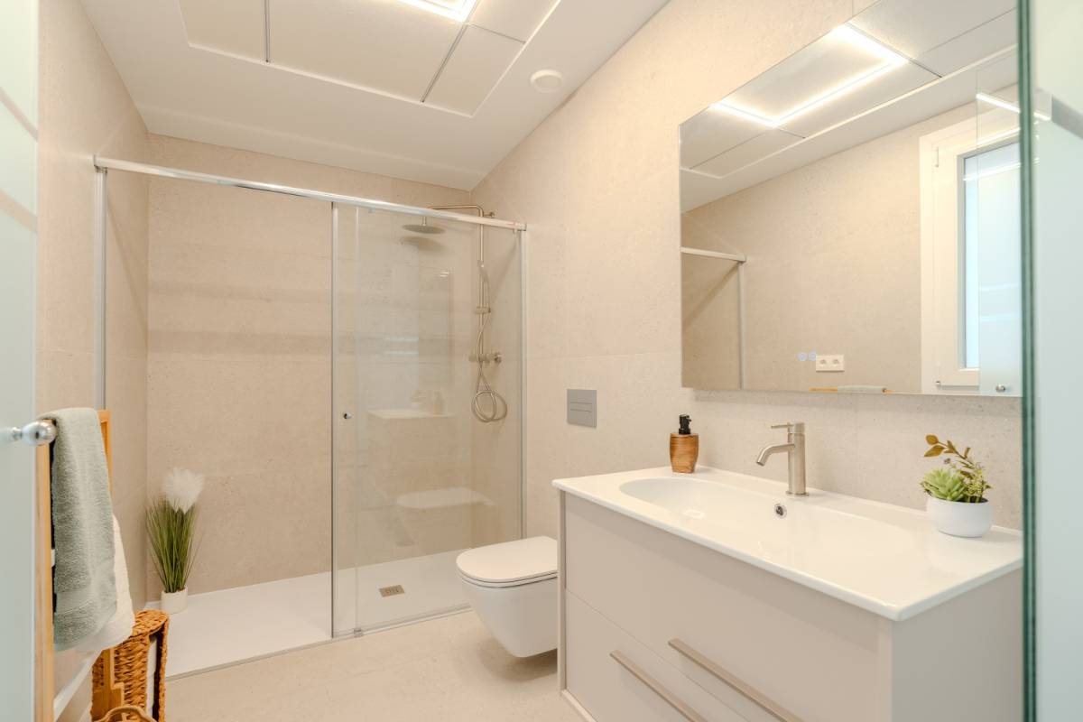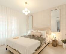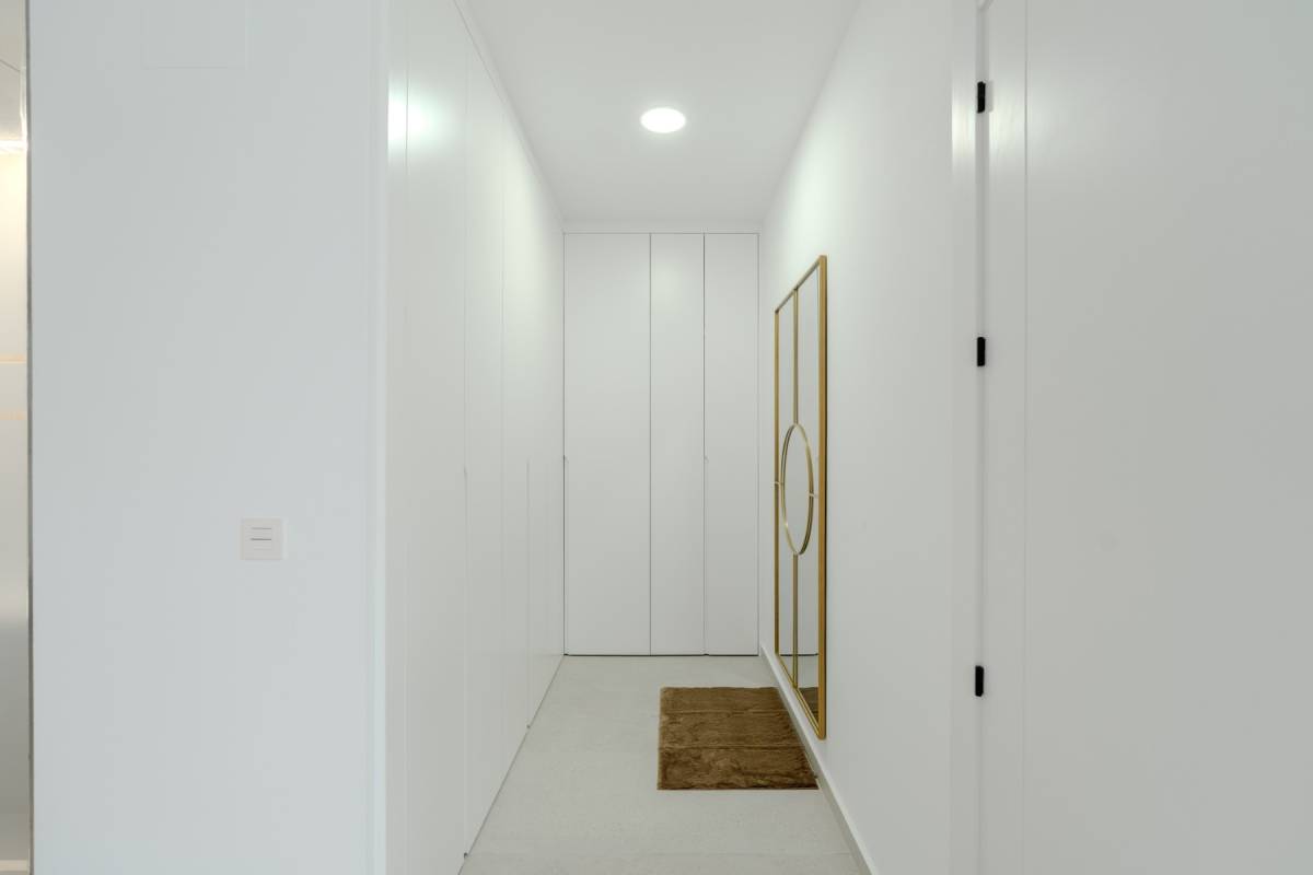 El equipamiento de estas viviendas incluye ventanas de aluminio con doble acristalamiento, aislamiento acústico y térmico óptimo según las normativas actuales de la UE, puertas de seguridad en la entrada, aire acondicionado, baños con espejos y mamparas de cristal + calefacción por suelo radiante, iluminación LED, armarios empotrados en los dormitorios, y una cocina moderna equipada con electrodomésticos.