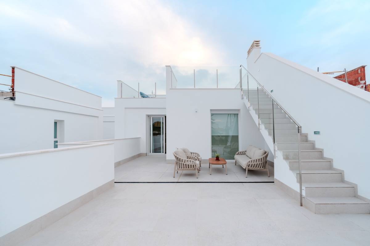 Estas exclusivas viviendas pareadas y villas en Los Alcázares, Murcia, con jardín privado, garaje de entre 79 y 96 m² y una terraza privada en el solarium, cuentan con una superficie construida total de aproximadamente 233,70 m², con 3 dormitorios, 3 baños, vestidor (en la primera planta), salón-comedor con cocina moderna equipada, y parcelas de entre aproximadamente 271 y 341 m².