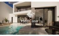 Modernas villas y casas adosadas de nueva construcción con piscina privada en una zona...