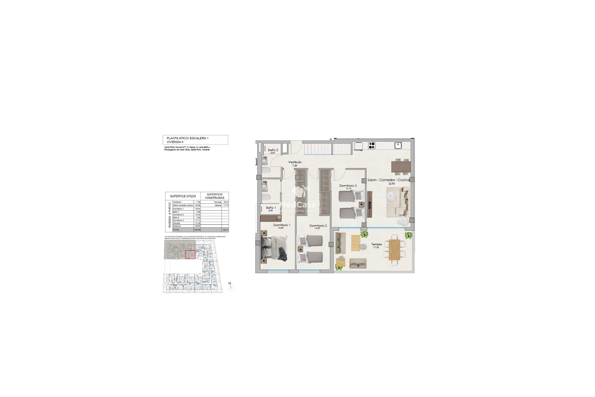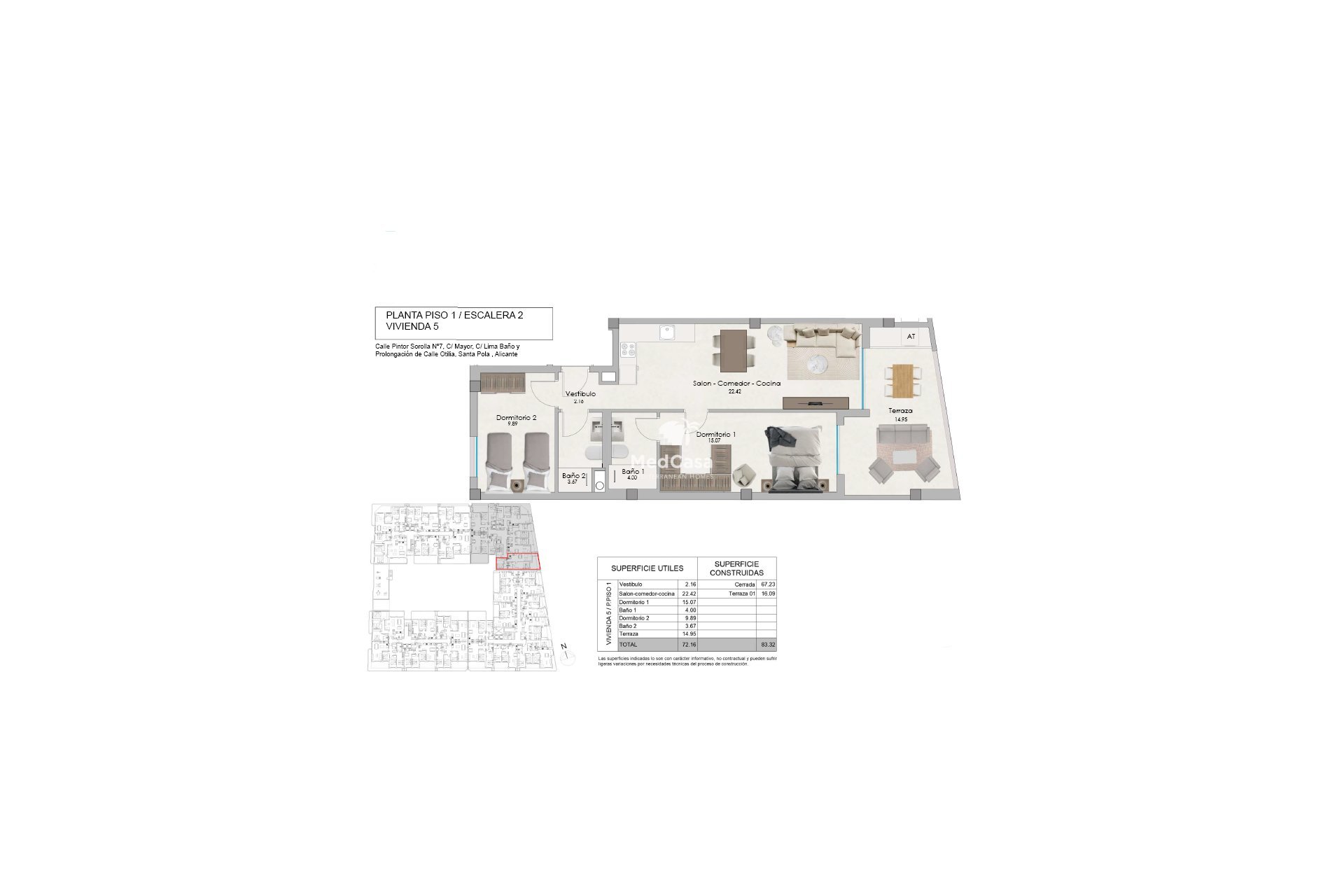 Aquí se construirán apartamentos con 2 y 3 dormitorios, 2 baños, salón-comedor y grandes terrazas de aproximadamente 12-38 m².