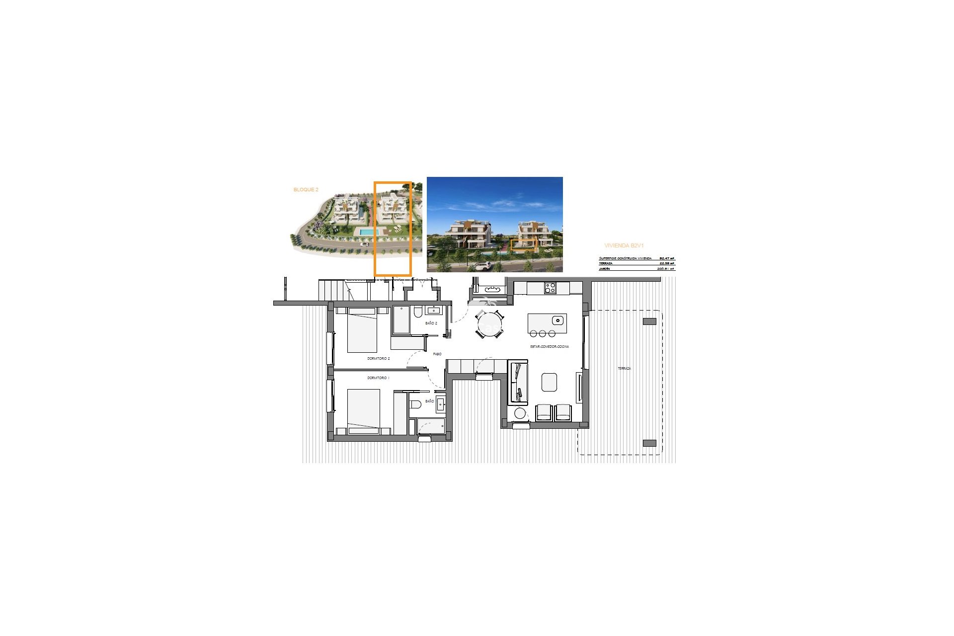 Descubre estas modernas viviendas de dos dormitorios y dos baños (uno en suite), situadas en planta baja con jardín privado y terraza. Además, ofrecemos apartamentos con amplias terrazas y áticos con solarium, ideales para disfrutar del buen tiempo. Estos dos bloques de nueva construcción cuentan con ascensor, lo que garantiza comodidad y accesibilidad. Las viviendas están equipadas con preinstalación de aire acondicionado por conductos, persianas, armarios empotrados en los dormitorios, y aerotermia para un consumo energético eficiente.