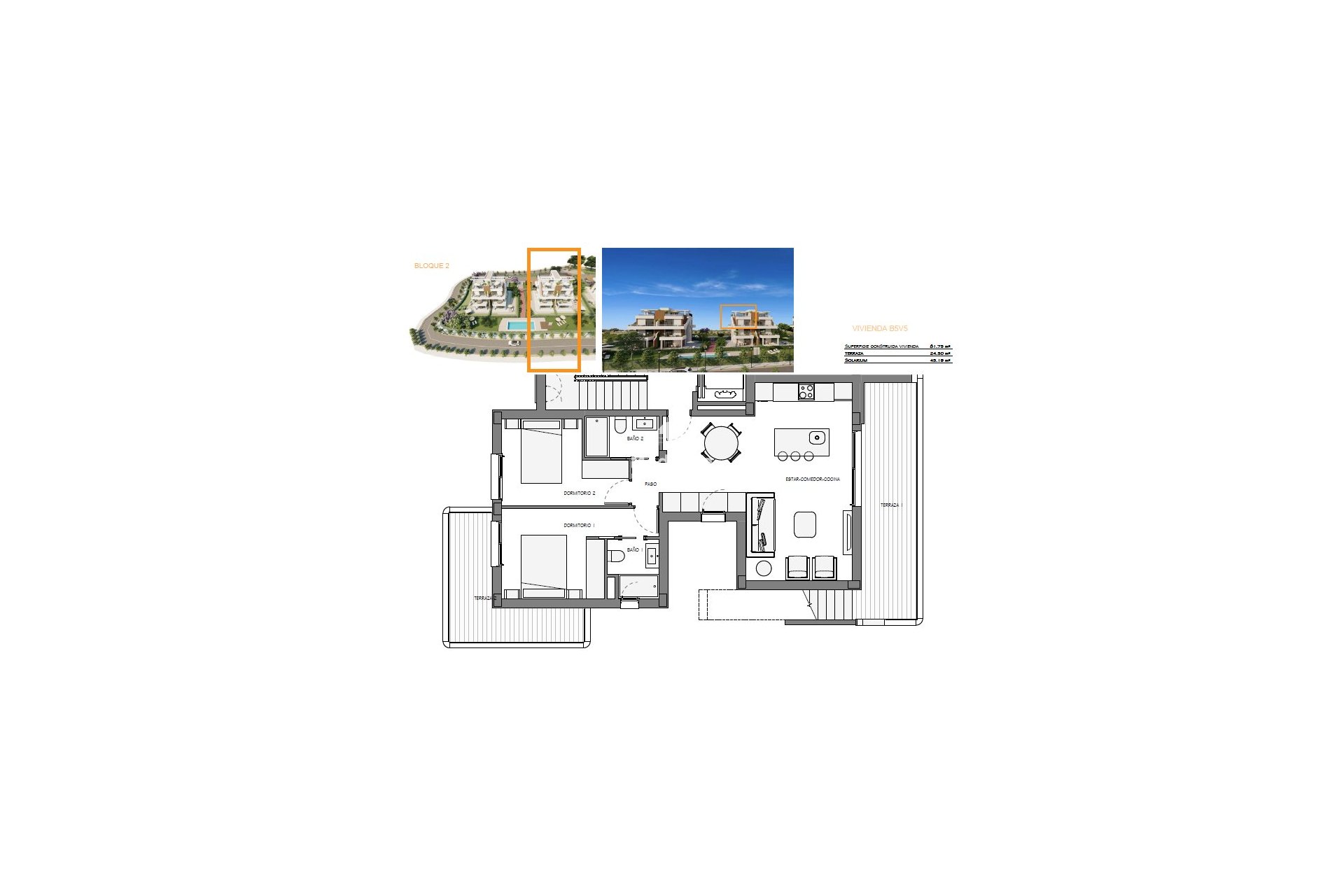 Descubre estas modernas viviendas de dos dormitorios y dos baños (uno en suite). Áticos con solarium, ideales para disfrutar del buen tiempo. Además ofrecemos viviendas en planta baja con jardín privado y terraza así como también apartamentos con amplias terrazas. Estos dos bloques de nueva construcción cuentan con ascensor, lo que garantiza comodidad y accesibilidad. Las viviendas están equipadas con preinstalación de aire acondicionado por conductos, persianas, armarios empotrados en los dormitorios, y aerotermia para un consumo energético eficiente.