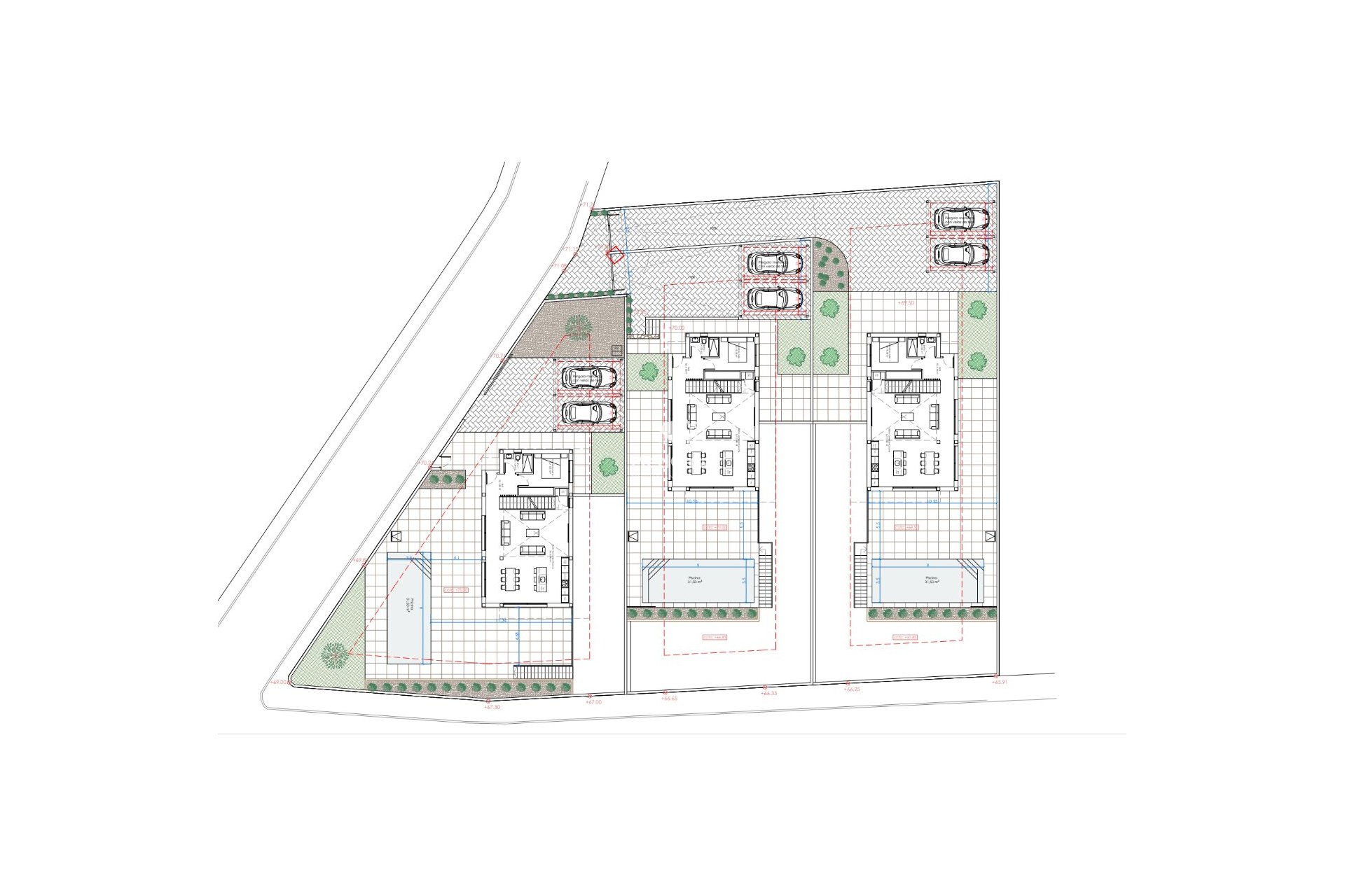 En la planta baja que consta de 88,60 m², encontramos un espacioso salón-comedor integrado con una moderna cocina con isla abierta, ideal para disfrutar de reuniones familiares o con amigos. En esta misma planta se sitúa un dormitorio con baño en suite, perfecto para mayor privacidad y funcionalidad. Incluye también un patio inglés. El exterior ofrece una piscina privada de 9 x 3,5 metros (31,50 m²), equipada con sistema de cloración salina, ducha y zona chill out, así como una elegante pérgola con capacidad para dos vehículos.
