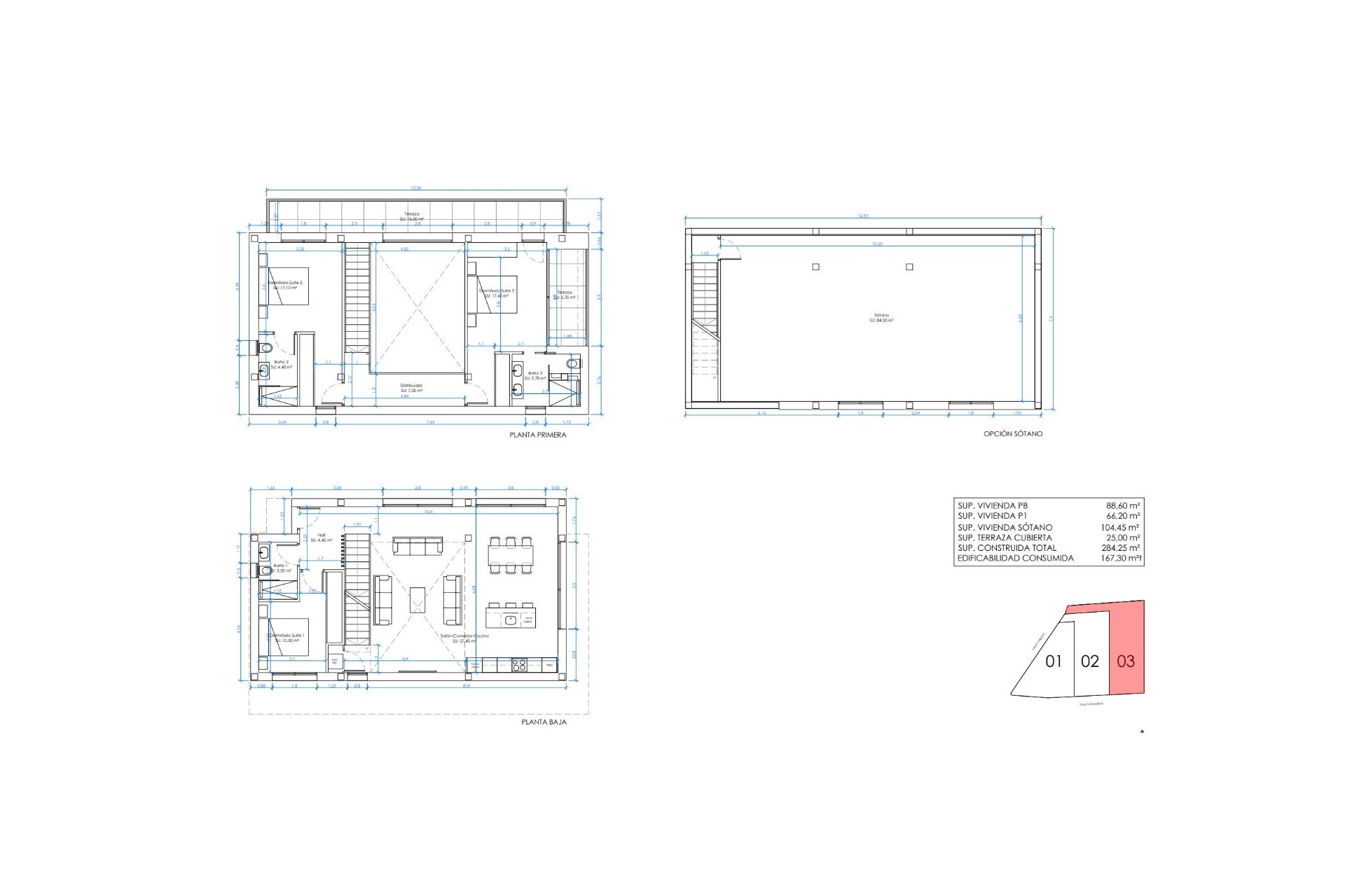 Espectacular villa de diseño elegante y altas prestaciones, distribuida en dos plantas más un amplio sótano de 104,45 m². Con un total de 3 dormitorios y 3 baños en suite, esta vivienda ha sido cuidadosamente diseñada para ofrecer comodidad, estilo y eficiencia en cada rincón.