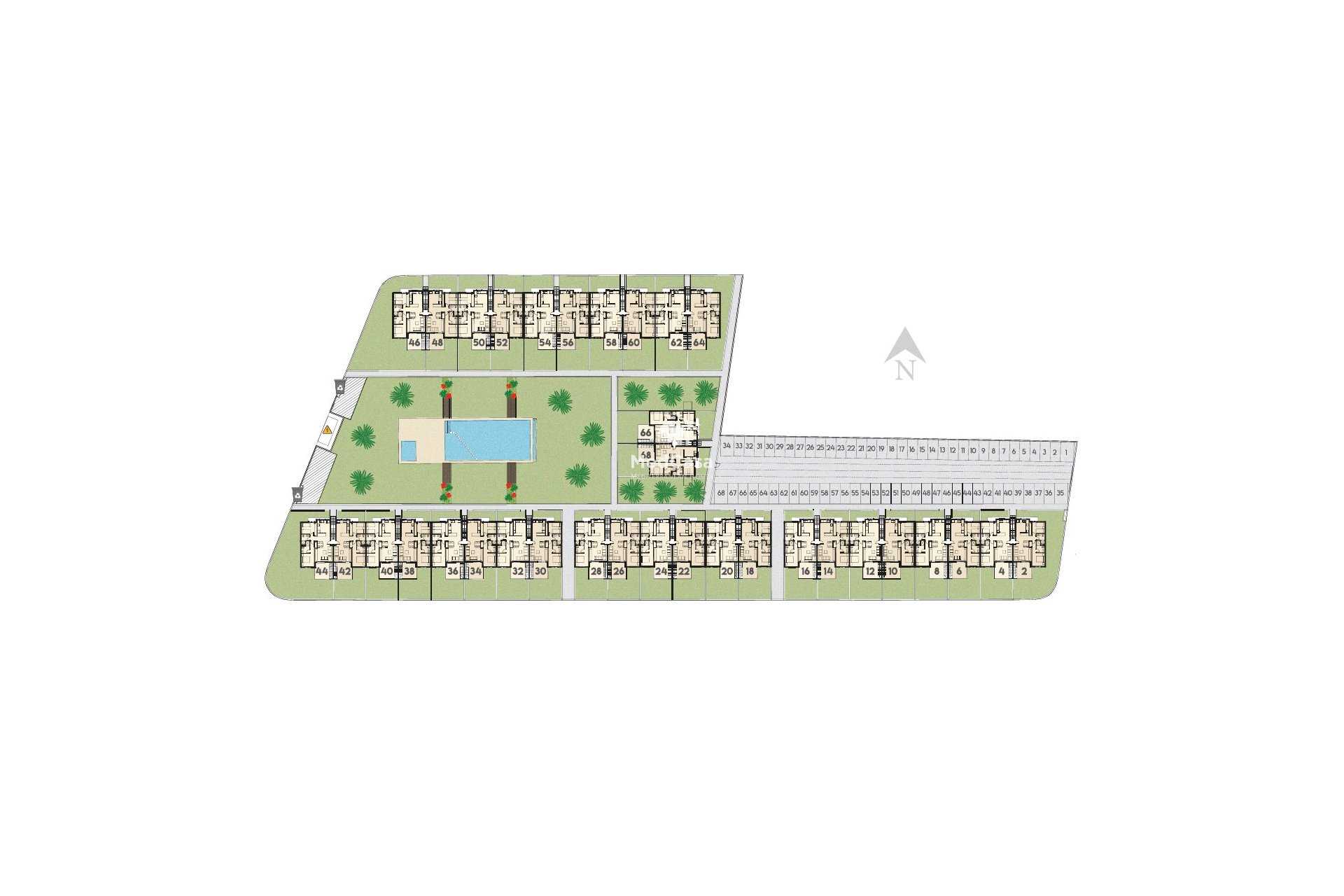 En este complejo privado y cerrado se encuentra una magnífica piscina comunitaria y zonas de aparcamiento.