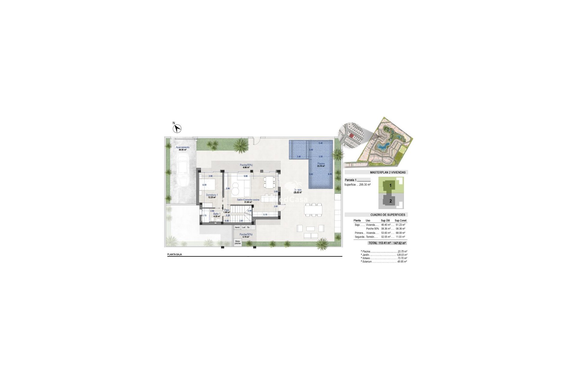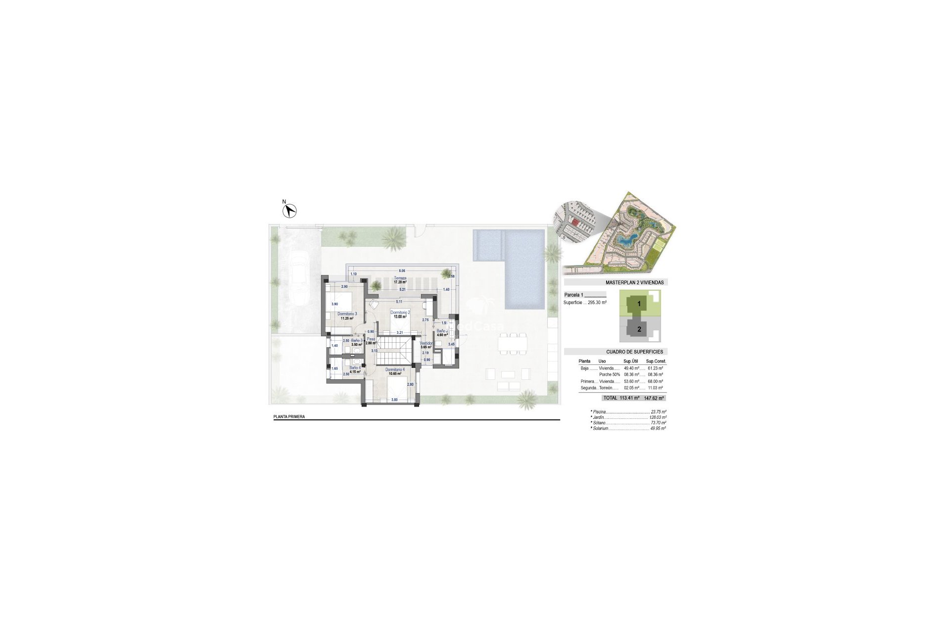 En esta fase de venta, se construirán un total de 2 villas con parcelas de 295,30 m².