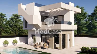 Estas preciosas villas de 3 dormitorios, cada una con una plaza de aparcamiento en la parcela, están ubicadas a solo unos 250 metros de un supermercado, restaurantes y bares. Una terraza en la azotea y una piscina privada son opcionales.