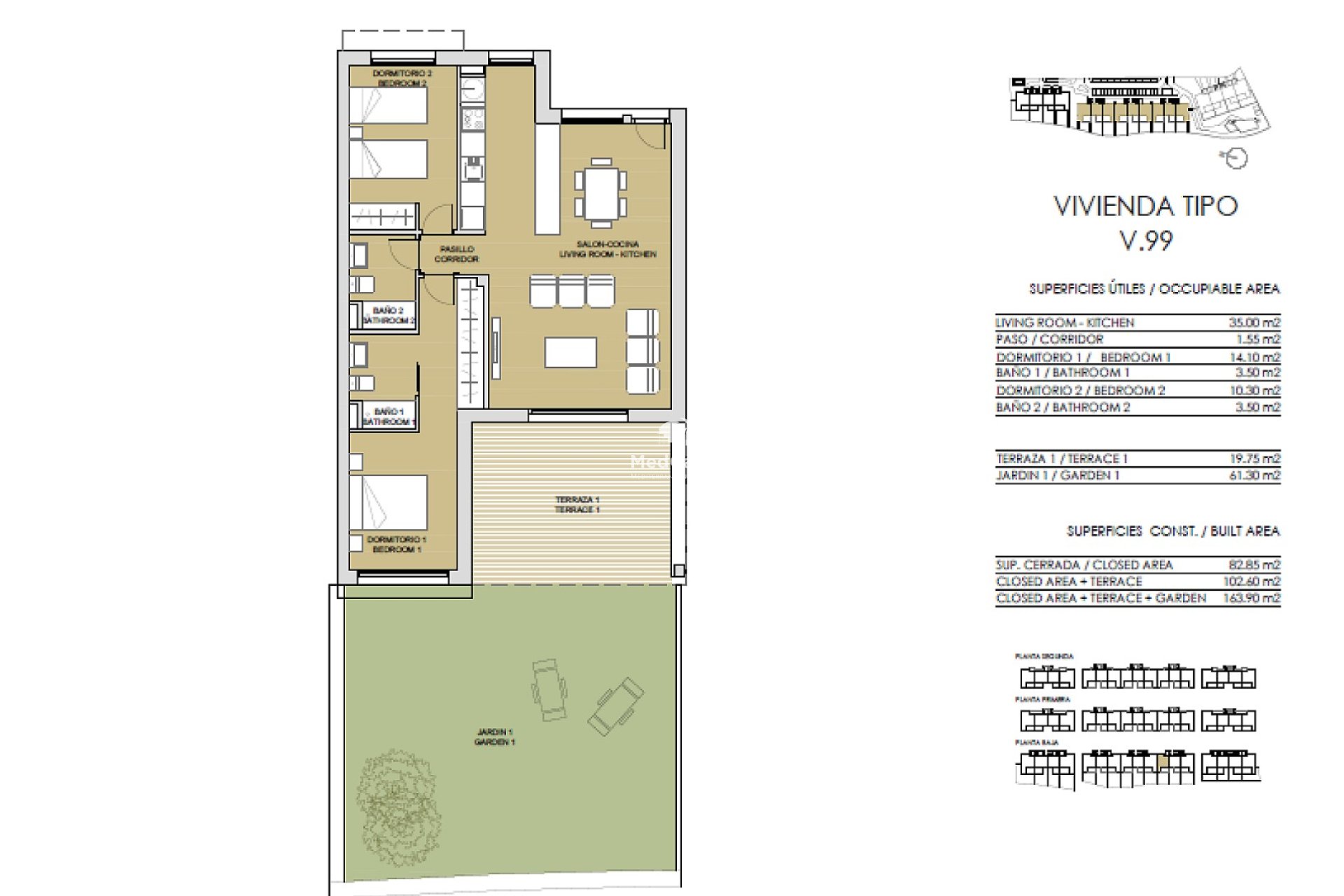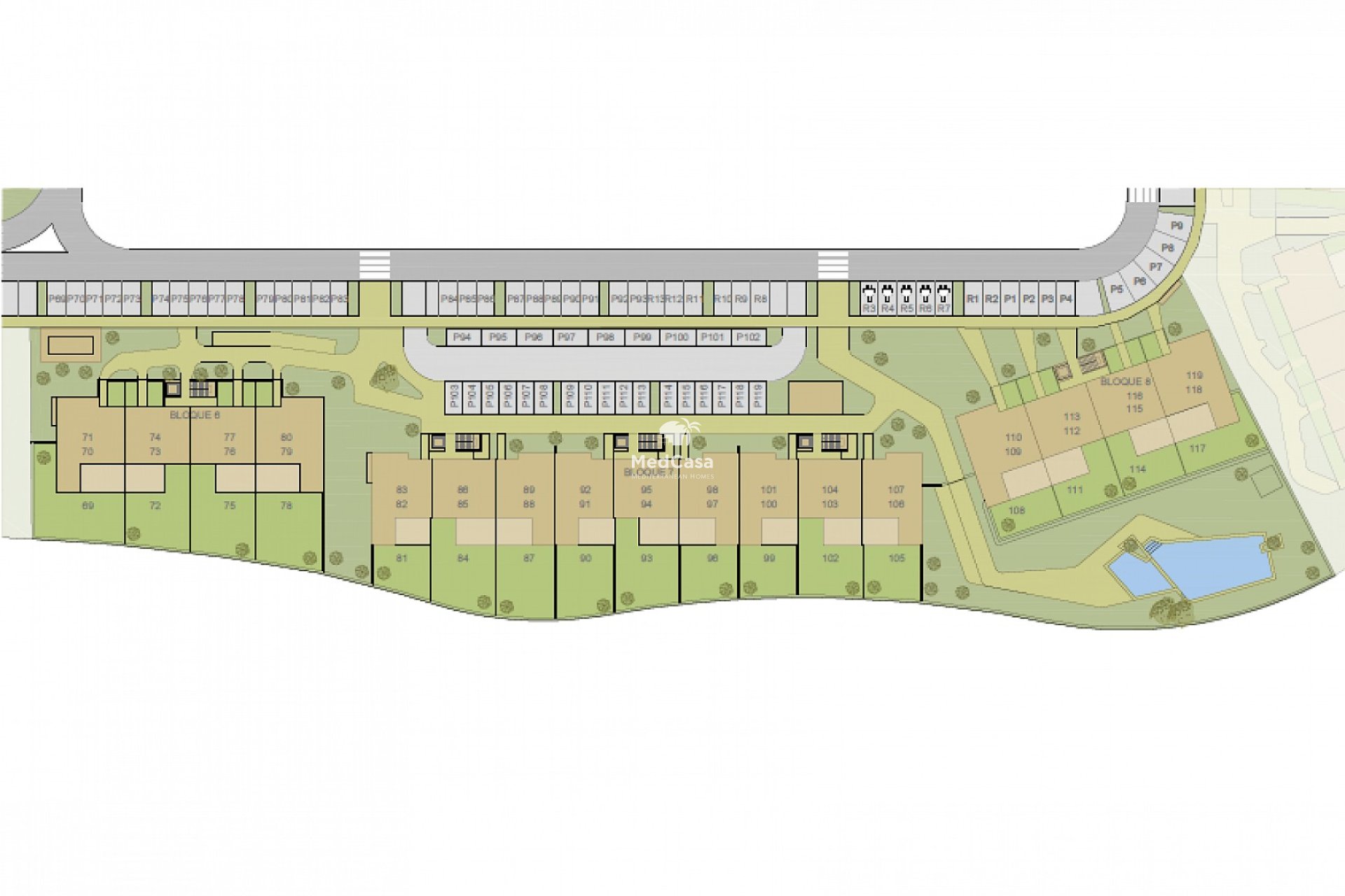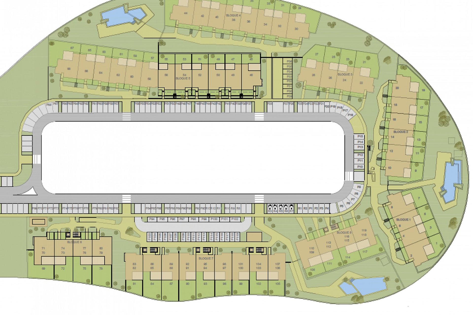 Todos los pisos tienen vistas al campo de golf y una plaza de aparcamiento incluida en el precio por valor de 5.000.- euros.