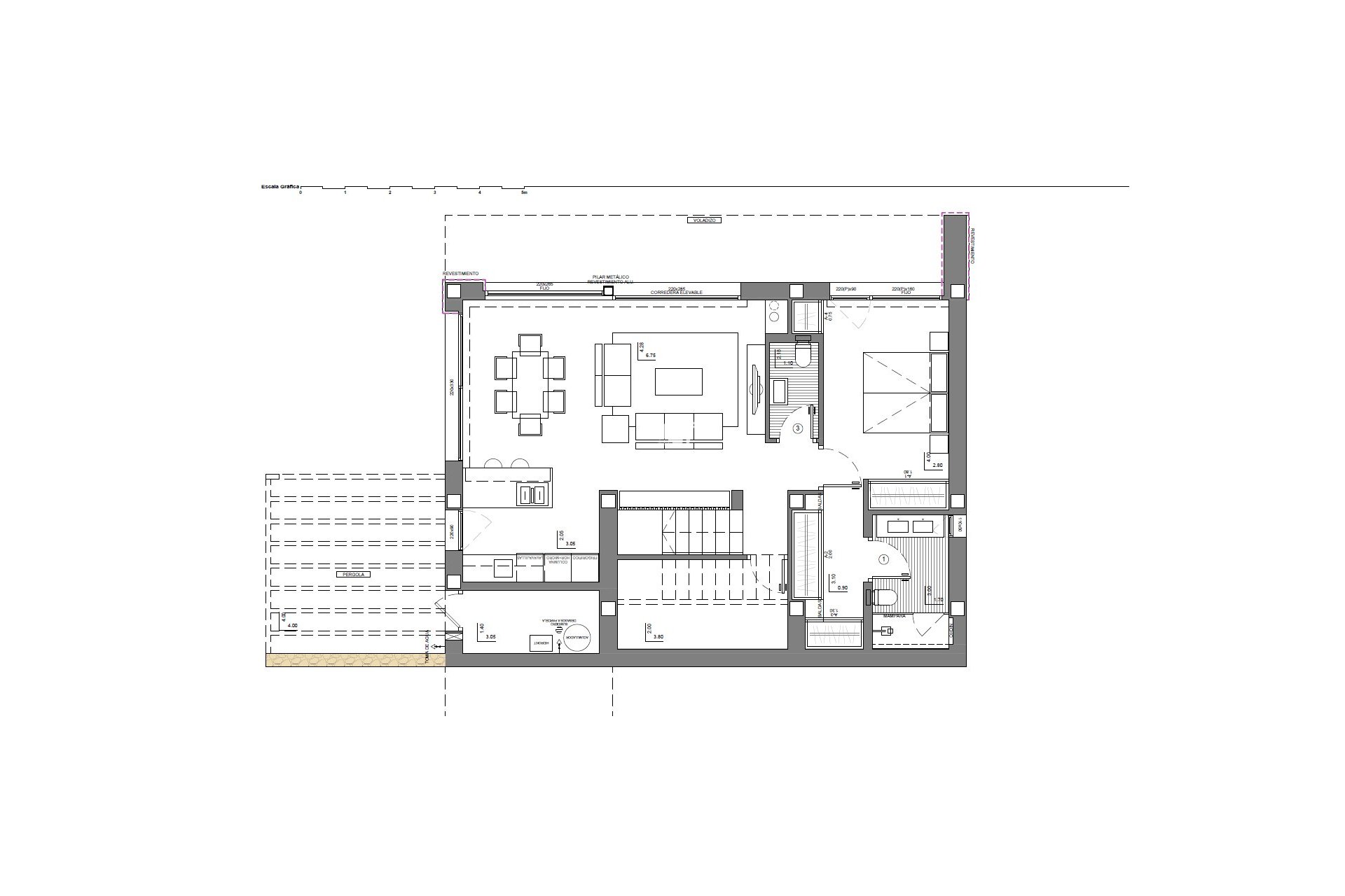 Destaca por tener en una única planta el dormitorio principal, el salón comedor, la cocina, todo ello conectado con las zonas exteriores.