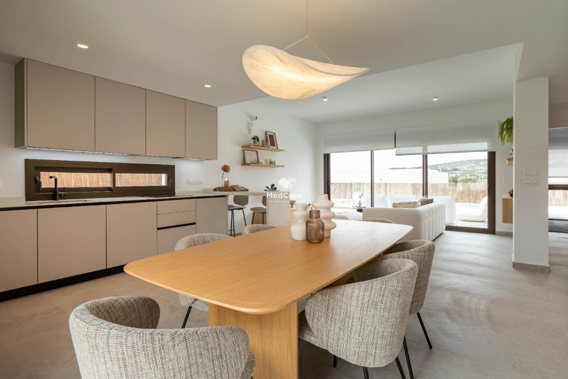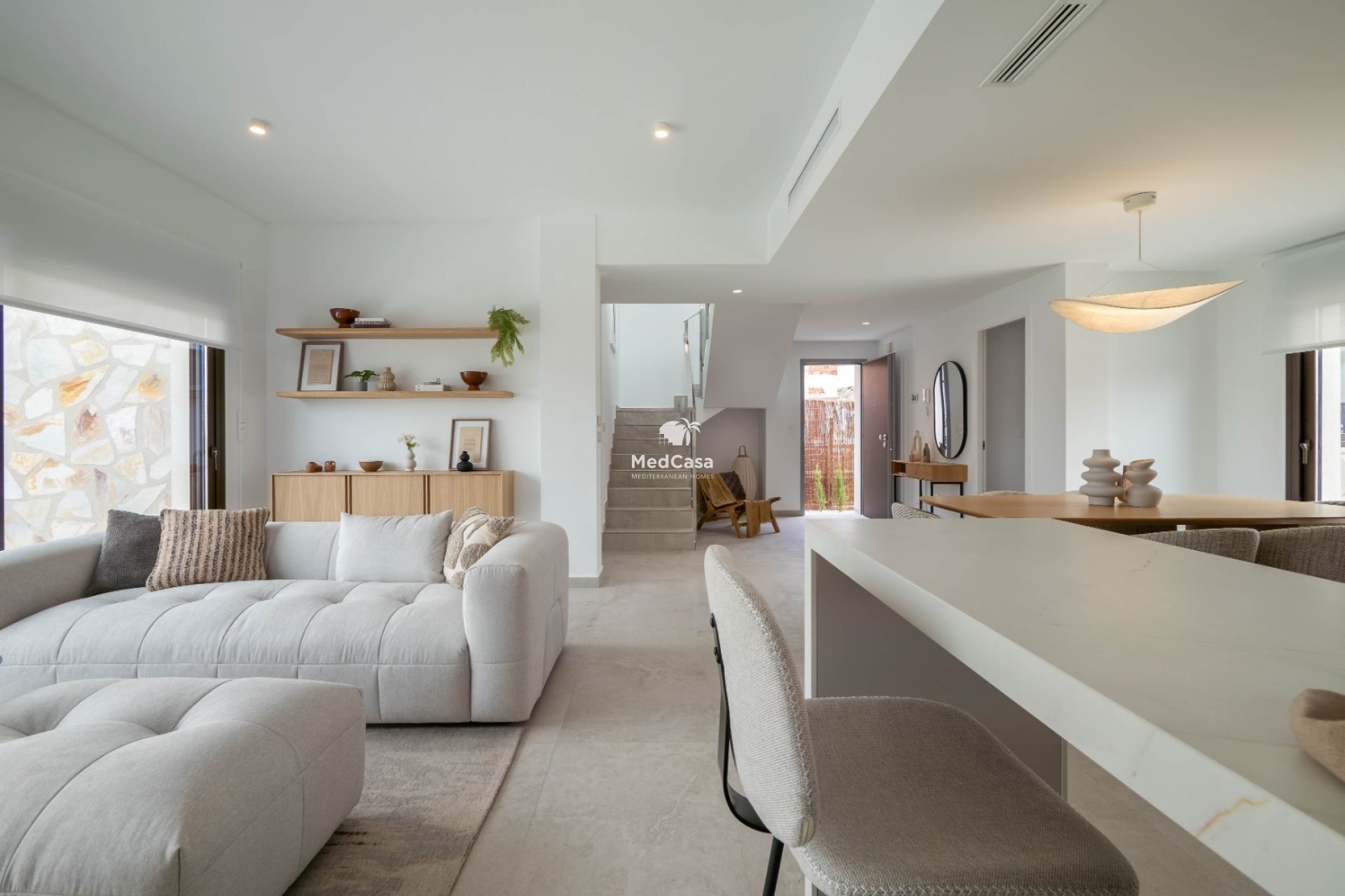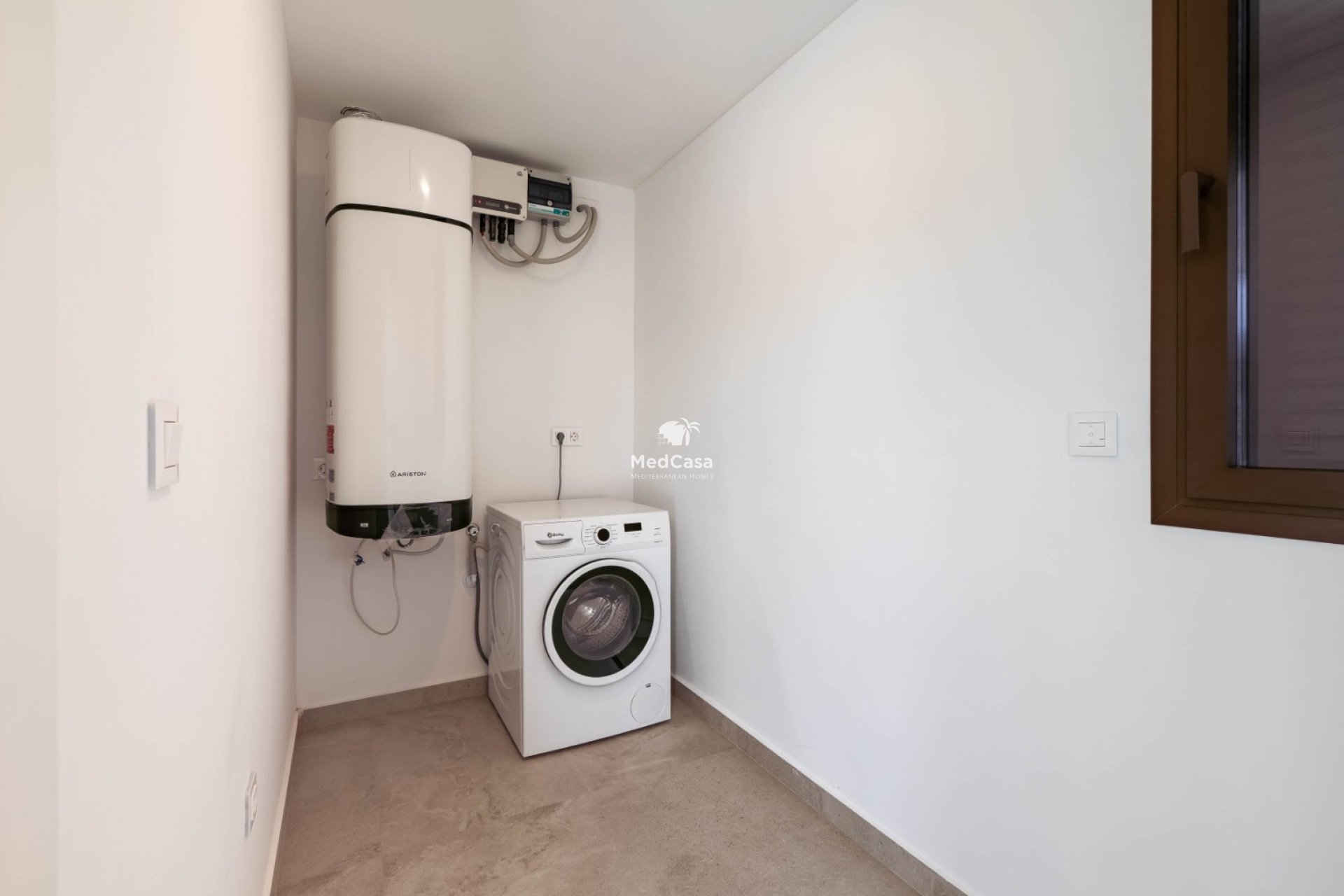 Zur hochwertigen Ausstattung dieser Villen gehören unter anderem Sicherheitstüren, Aluminiumfenster mit Doppelverglasung, optimale Schall- und Wärmeisolation nach aktuellen EU-Baurichtlinien, Alarmanlage, elektrische Rollläden, Smat Home, eine moderne Einbauküche mit Elektrogeräten, Einbauschränke in den Schlafzimmern, Badezimmer mit Fußbodenheizung, Glasduschwände und Spiegel, eine Klimaanlage sowie ein Aero-Therm-System für die Heißwasserversorgung.