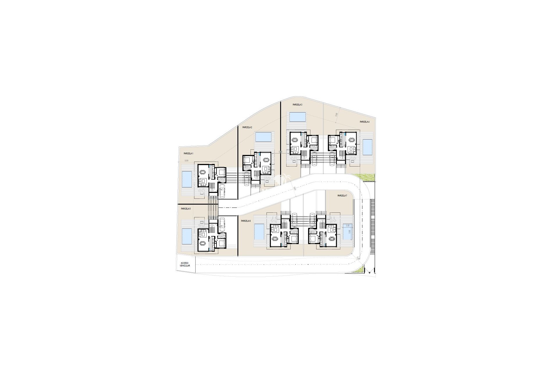 Diese nur 7 Villen liegen in einer ruhigen Einliegerstraße.