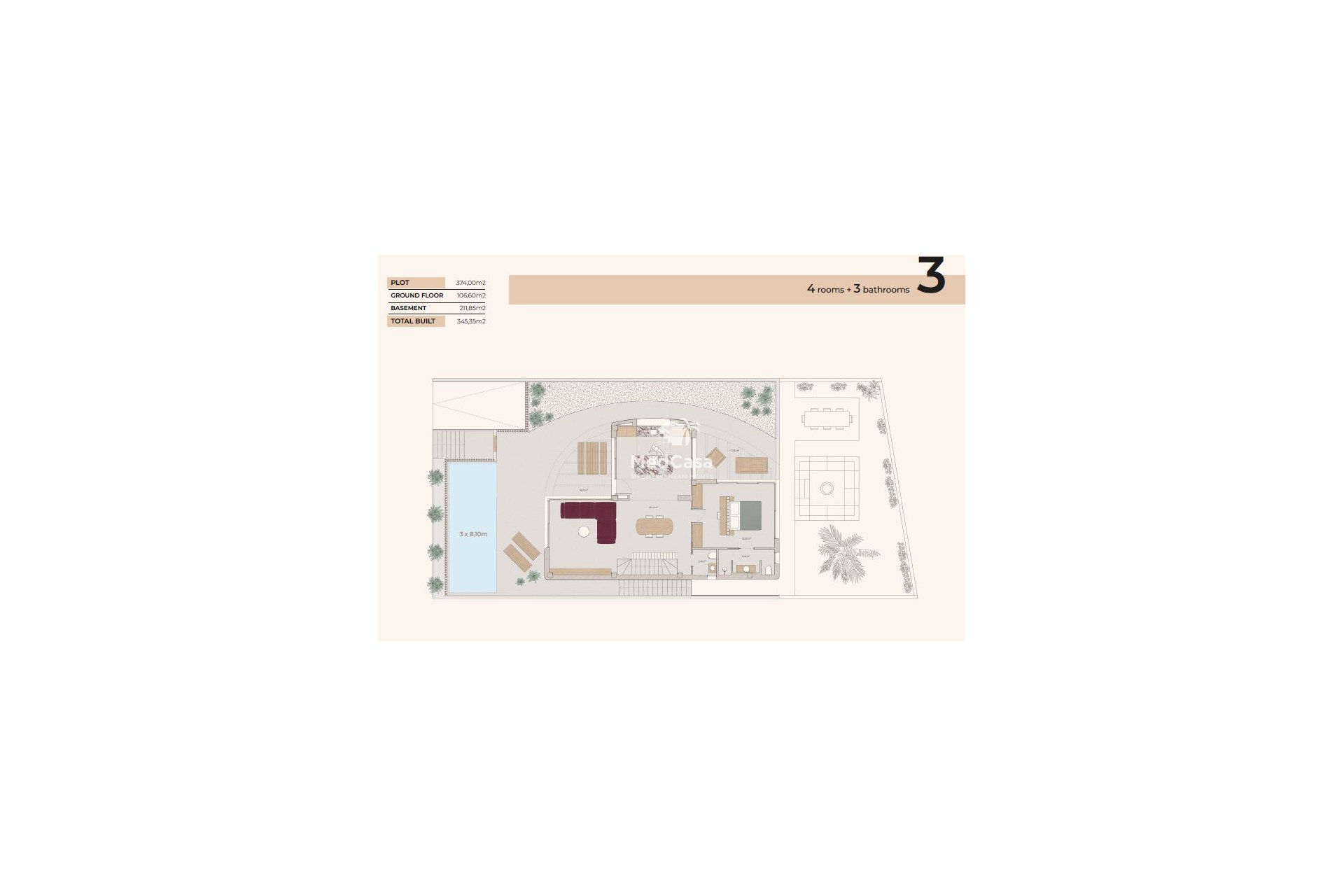 Diese beeindruckende freistehende Villa vereint modernes Design, Energieeffizienz und höchsten Komfort und bietet ein exklusives Wohnerlebnis in einer privilegierten Umgebung. Mit einer bebauten Fläche von ca. 345 m² auf Grundstücken zwischen 349 und 432 m² besticht diese Immobilie durch Großzügigkeit, Funktionalität und hochwertige Ausstattungen.