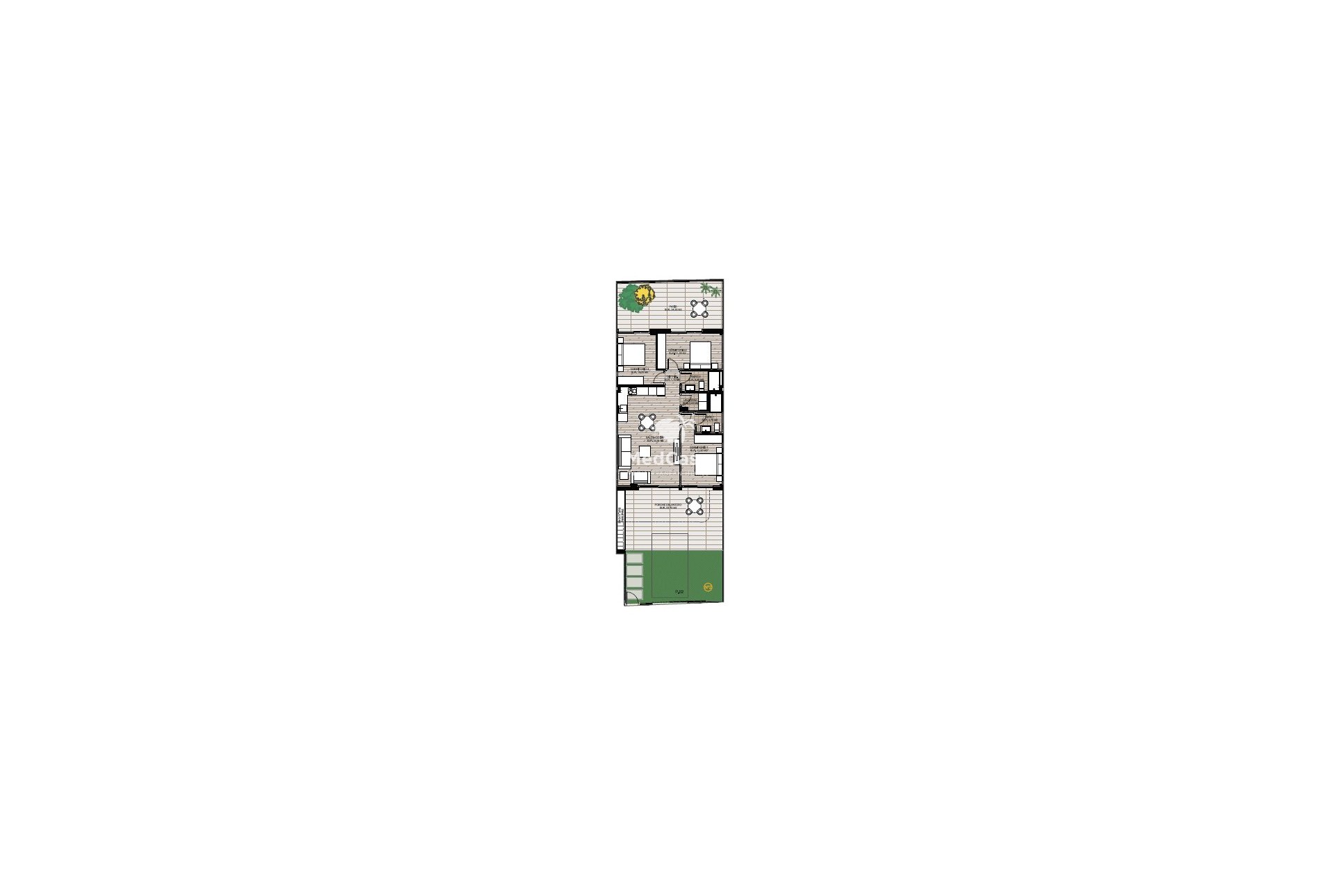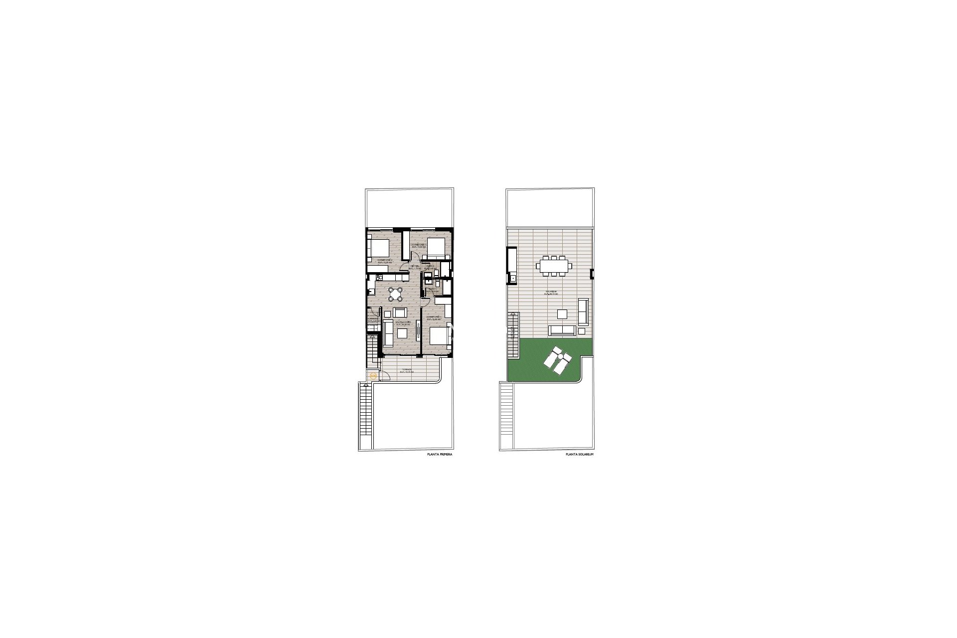 Die Wohnanlage verfügt außerdem über einen attraktiven Gemeinschaftspool, ideal, um das mediterrane Klima zu genießen. Mit einer bebauten Fläche zwischen 83,35 und 86,45 m² bieten diese Häuser eine einzigartige Gelegenheit, in einer eleganten, energieeffizienten und durchdacht gestalteten Umgebung zu leben – geschaffen, um jedes Detail zu genießen.