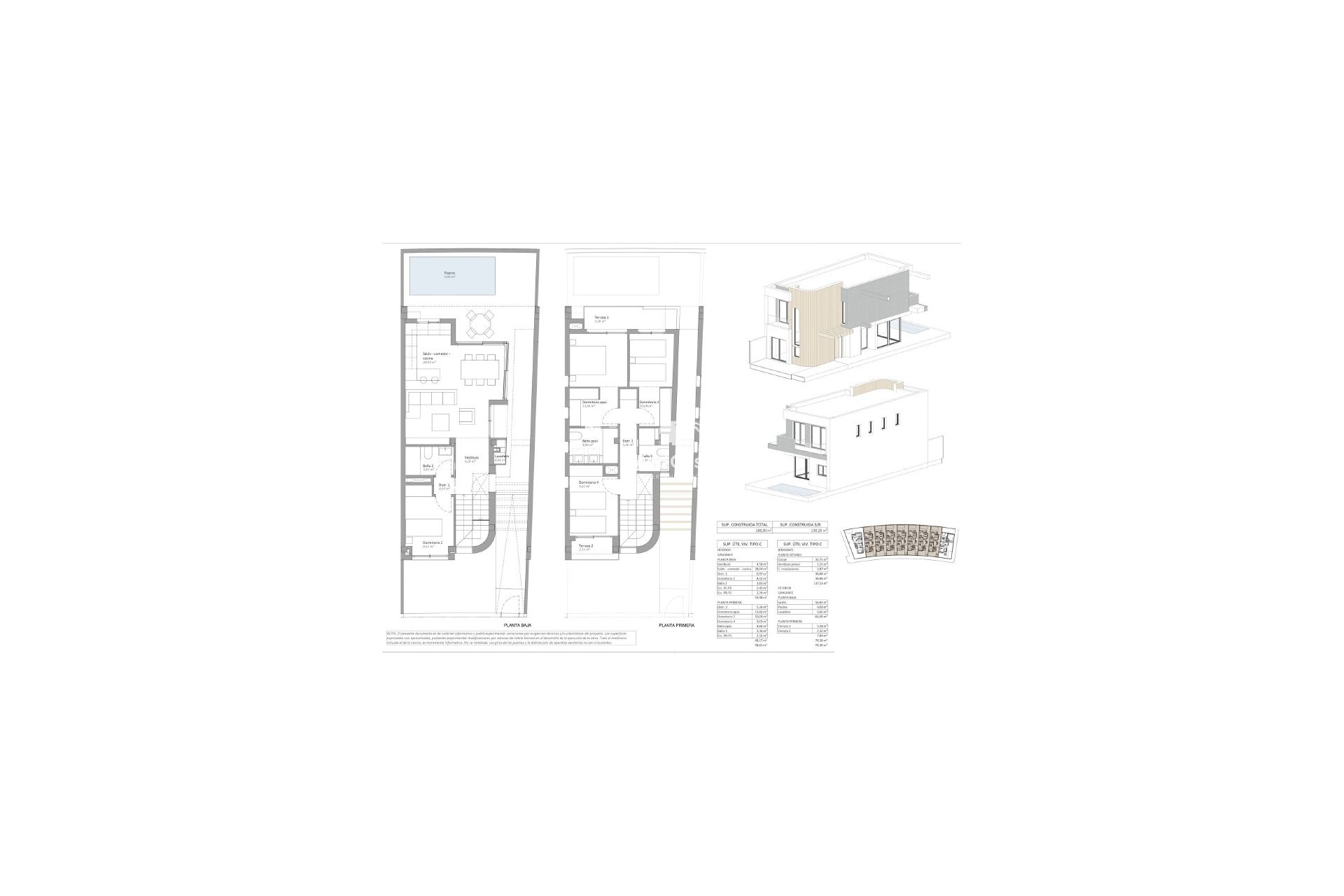 Diese exklusive Wohnanlage besteht aus 9 Villen, die darauf ausgelegt sind, Komfort, Großzügigkeit und eine hohe Lebensqualität zu bieten. Die Wohnflächen der Häuser liegen zwischen 190 und 210 m² und sind funktional gestaltet, um jeden Raum optimal zu nutzen. Die Anlage befindet sich in einer ruhigen Umgebung, ideal für alle, die Privatsphäre und Wohlbefinden suchen, ohne auf die Nähe zu allen wichtigen Dienstleistungen wie Geschäfte, Schulen, Sportanlagen und Restaurants verzichten zu müssen. Darüber hinaus verfügt das Wohnprojekt über großzügige Grünflächen, die eine angenehme und harmonische Atmosphäre zum Entspannen und Genießen im Freien schaffen.