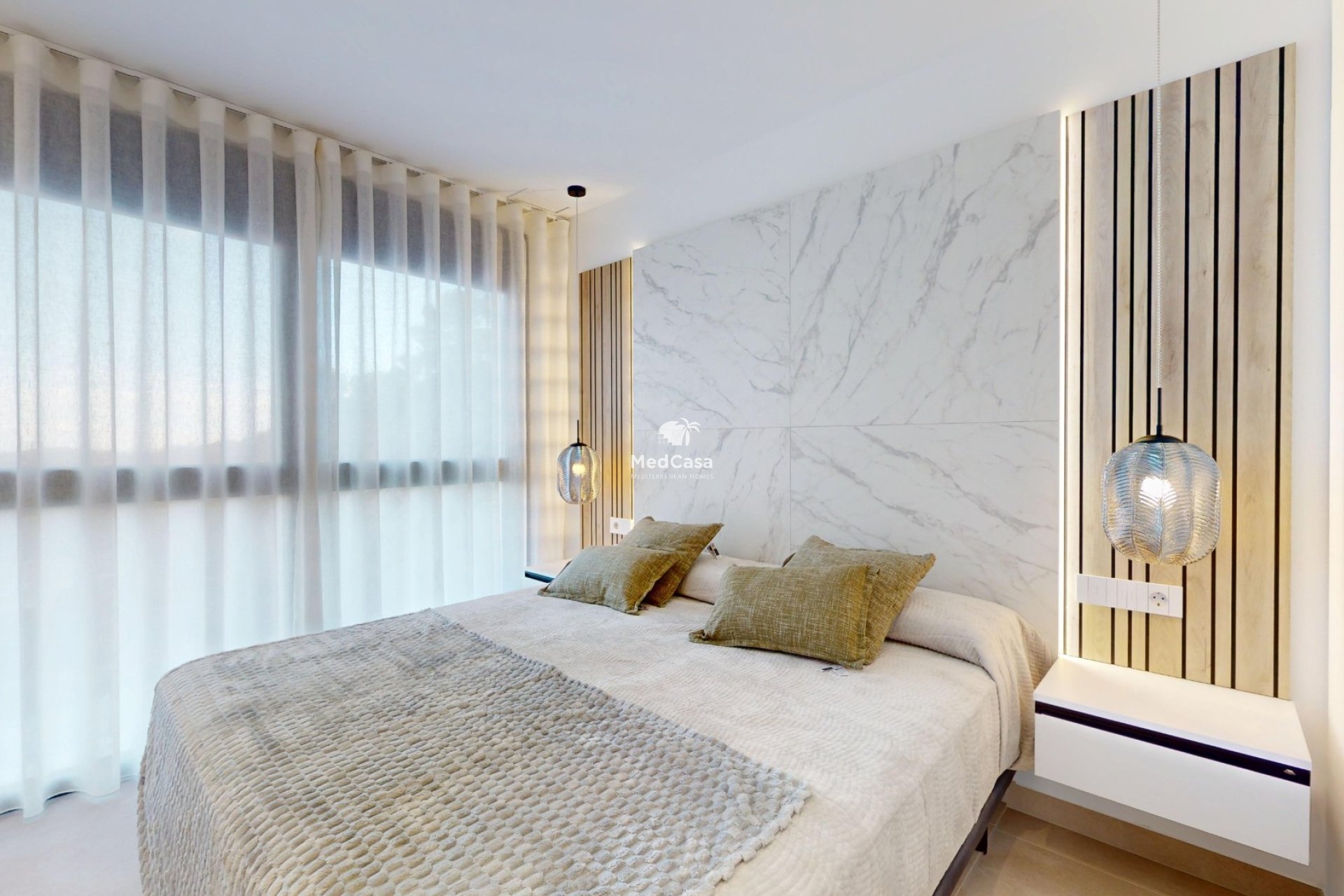 Zur Ausstattung dieser Villen gehören unter anderem Aluminiumfenster mit Doppelverglasung, optimale Schall- und Wärmeisolation nach aktuellen EU-Baurichtlinien, Sicherheitstüren im Eingangsbereich, Gegensprechanlage, Vorinstallation der Klimaanlage, elektrische Rollläden in den Schlafzimmern, LED-Außenbeleuchtung, Bäder mit Spiegeln und Glasduschabtrennungen, Einbauschränke in den Schlafzimmern und einer modernen Einbauküche.