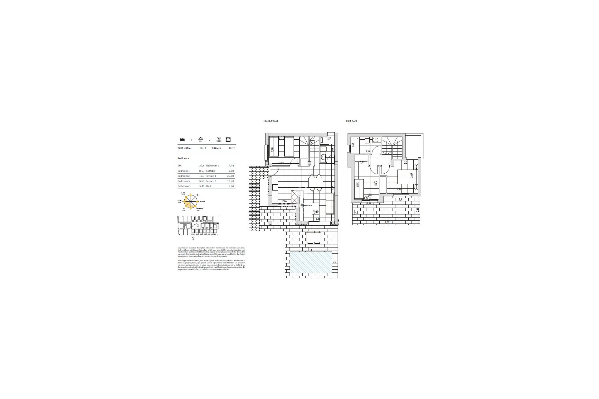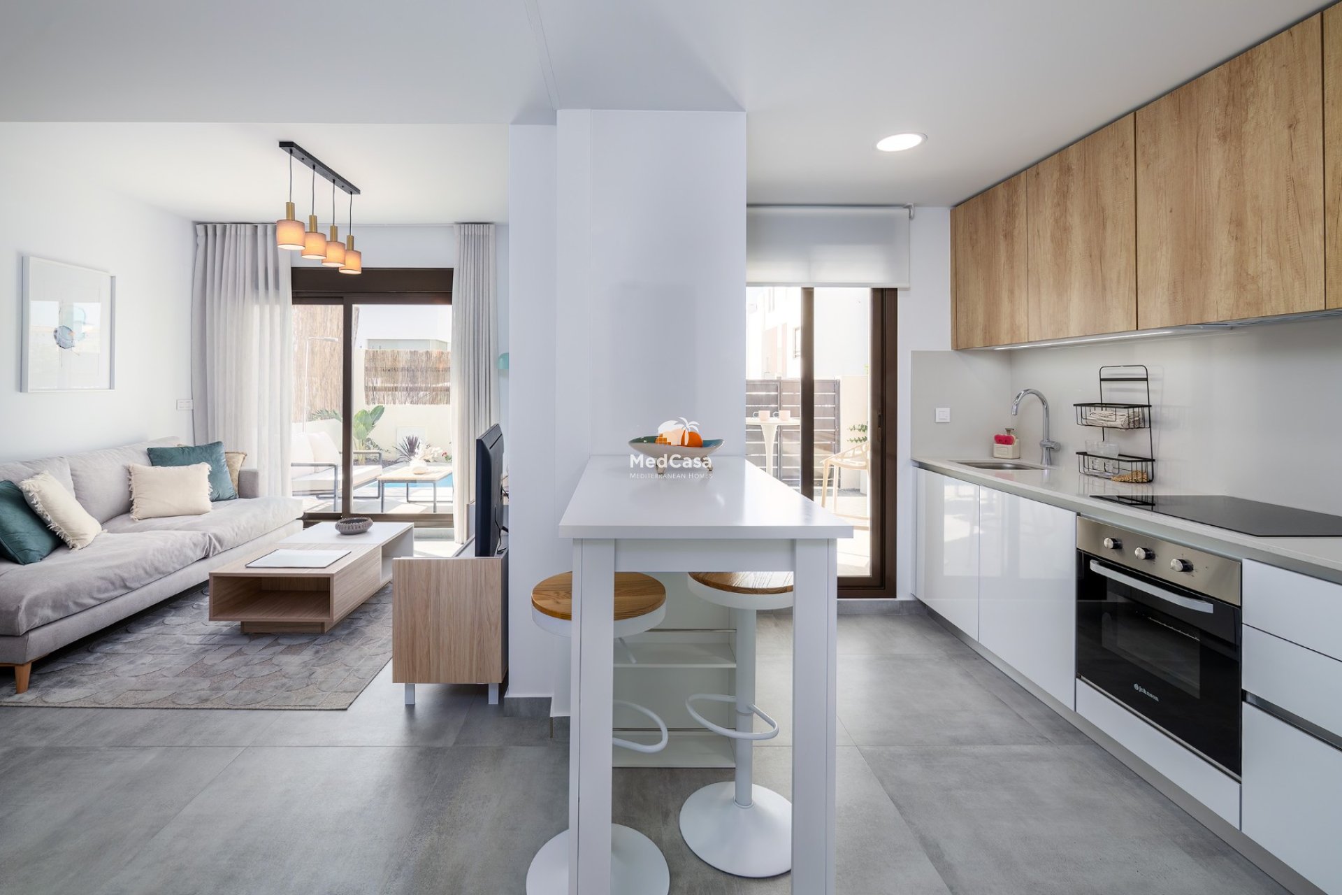 Diese bezugsfertige Villa liegt in einer privaten und geschlossenen Wohnanlage und verfügt über eine bebaute Gesamtfläche von ca. 84 m2+ Terrassen um die 40 m2 mit 3 Schlafzimmern, 2 Bädern, Wohn-/Essbereich mit moderner Einbauküche+ Elektrogeräten.